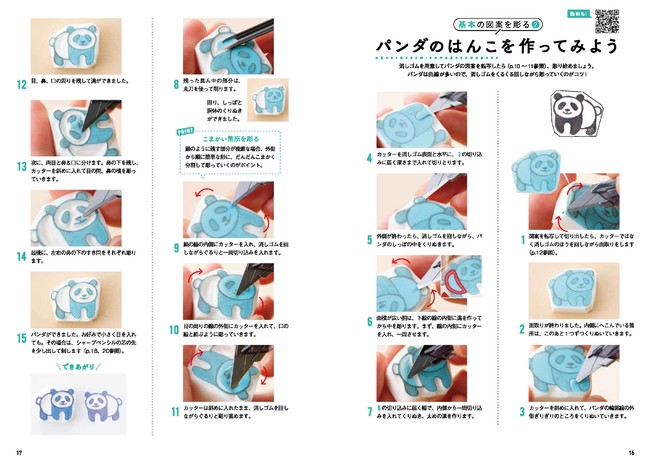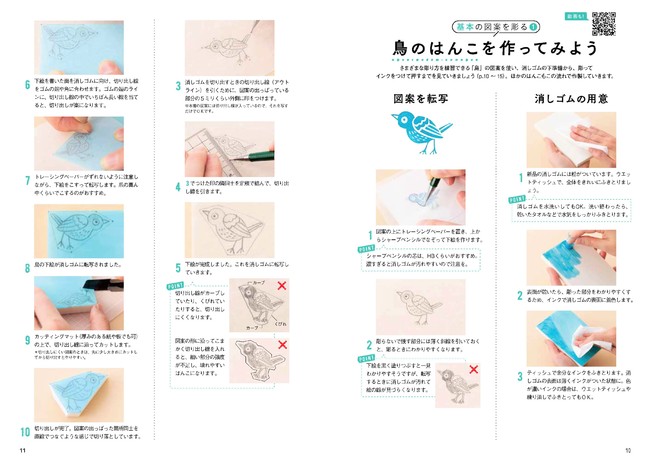 そんな消しゴムはんこの第一人者、津久井智子先生の彫りテク&押しテクの基本が動画つきで見られるはじめての本が登場! 先生の教室でしか入手できなかったかわいい図案もぎっしり収録しました。