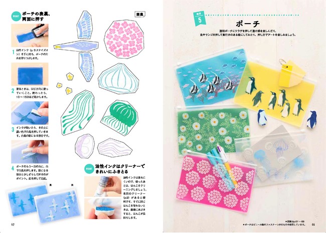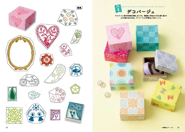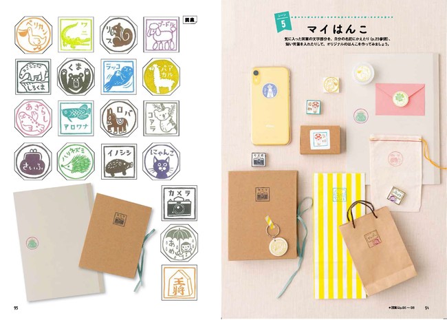 作ったはんこを使った、雑貨や小物のアイデアもいろいろ収録。