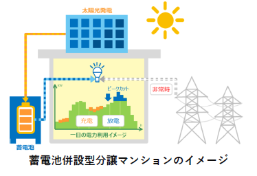 2022年 10月に販売開始予定のブランズ牛込柳町は 、東急不動産が 屋上に太陽光パネル( 15kWを設置し、地上部に東京電力HDがリース提供する蓄電池( 42kWh)を設置します。また、ファミリーネット・ジャパンの高圧一括受電方式を共用部・専有部に導入することで、実質再生可能エネルギー(非化石証書付の電力をマンションに供給予定です。 東急不動産と 東京電力 HDが 蓄電池エネルギーサービス契約を締結し、太陽光発電設備と組み合わせた前年度電力使用実績(1年間)を基に、蓄電池によるピークカット ・ピークシフトに向けた適切な充電放電電力量を年1回設定する蓄電池運用支援サービス及びマンションで停電が発生した場合に備えて蓄電池にどれくらいの電力量を残しておくかを、管理組合の意向に沿った形で設定できる非常用電源支援サービスを管理組合に提供する予定です。