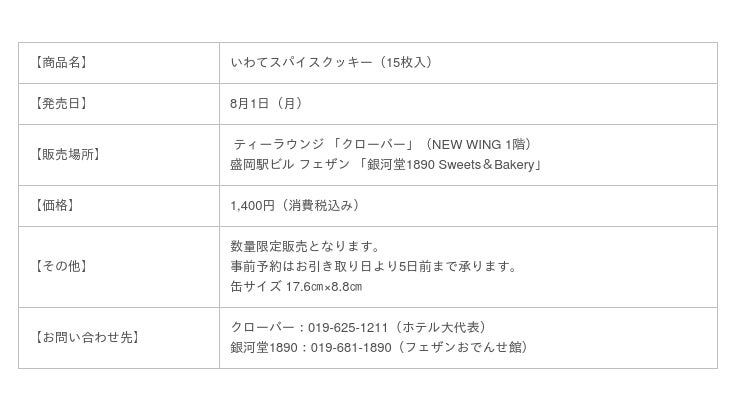 ミニョンスイーツラボ「いわてスパイスクッキー」概要