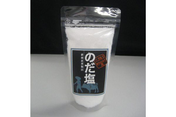 野田村に古くから伝わる直煮製法で作られたまろやかな味わいの自然塩。昔から用いられていた松の木を燃料にして、鉄鍋に海水を注ぎ足しながら4日間じっくりと煮詰め、約200リットルの海水から40キロ前後の塩を作り出します。薪割から釜の火加減調整のほか、塩分濃度や乾燥の温度・湿度までしっかりと管理しています。職人がまろやかさにこだわり、手塩にかけて作られています。