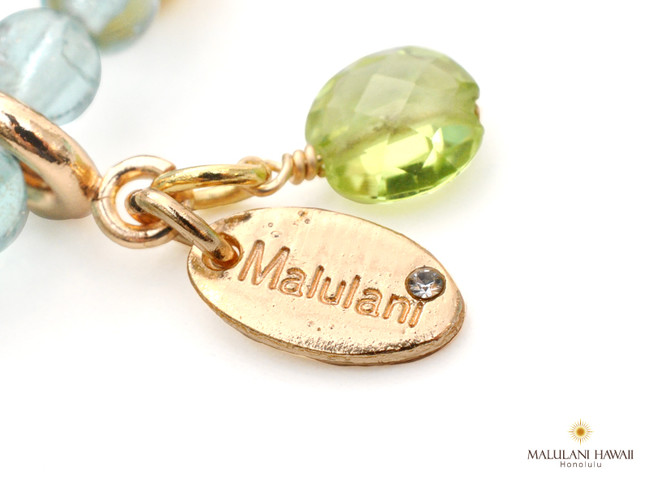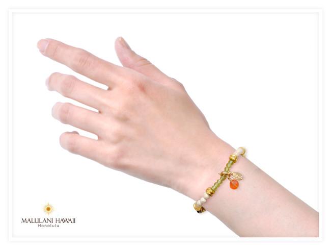 オリジナルチャームと水晶には、ハワイ語で「神のご加護」を意味する「Malulani」と刻印。