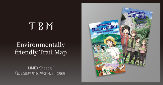 株式会社TBM(本社:東京都千代田区、代表取締役CEO:山崎敦義、以下TBM)の石灰石を主原料とする「LIMEX Sheet(ライメックスシート)」80μmが、株式会社昭文社ホールディングス(本社:東京都千代田区、代表取締役社長:黒田茂夫)とその子会社である株式会社昭文社(本社:東京都千代田区、代表取締役:川村哲也、以下昭文社)が発売する、『山と高原地図 特別版』の「筑波山・加波山」および「三浦・房総」の2点に採用されました。人気登山マンガ『山と食欲と私』と『ヤマノススメ』の登場人物たちの描き下ろしイラストがパッケージに使用された商品で、2022年8月25日より全国の主要書店で発売されます。