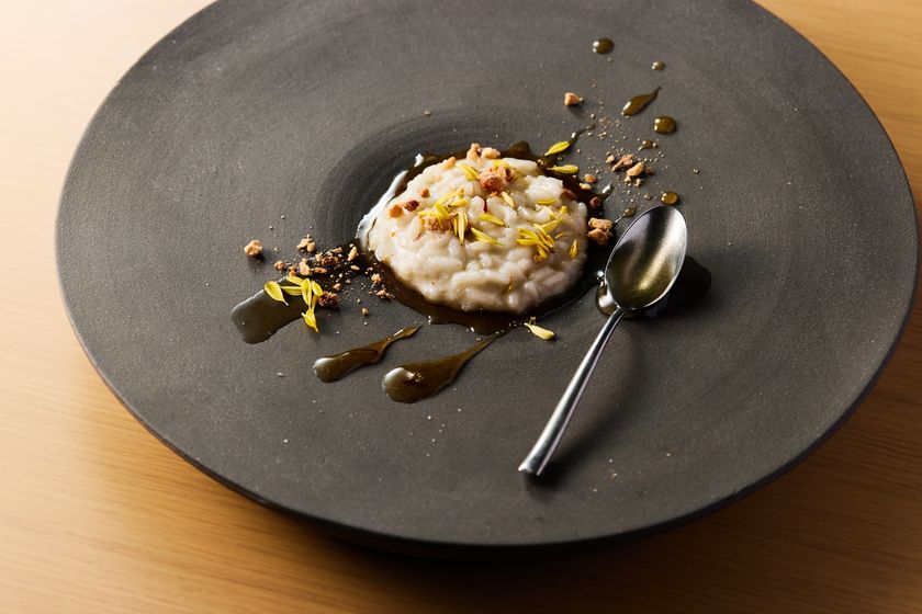 ゴルゴンゾーラリゾット サフランとはちみつのソース