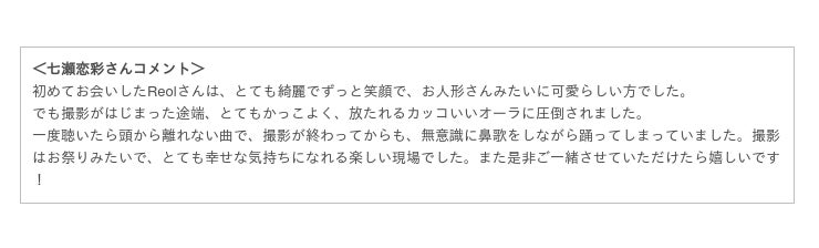エナジードリンク「ZONe」の「IMMERSIVE SONG PROJECT(イマーシブ ソング プロジェクト)」に参加したReolは、唯一無二の世界観と圧倒的歌声を持ち、国内外から高い注目を浴びるアーティスト。シンガーとしてのみならず、作詞・作曲・編曲のトータルプロデュースもしており、新曲「煽げや尊し」では、作詞、作曲を行っています。「煽げや尊し」はReol自身の幼少期の夏の記憶からインスパイアされており、日本の夏祭りを想起させる歌詞やサウンドが印象的で、高揚感が感じられ思わず踊りだしたくなるような一曲です。ミュージックビデオではReolの故郷の盆踊りをモチーフにしたダンスを、力士などの個性豊かなキャストやプロ・ダンサーらとともに披露してます。思わず一緒に踊りだしたくなるダンスは必見。さらに、楽曲をより一層盛り上げるダンサーとして、自身のTikTokフォロワーが100万人を超えるブレイクダンサーの七瀬恋彩、SNSでハイレベルな「踊ってみた」を上げて話題のダンス・グループ・YDK Apartmentのメンバーらが出演しています。