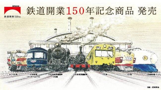 各商品には鉄道開業150年の公式ロゴマークやJR6社の車両がデザインされており、まさに鉄道開業150年だからこそ実現したメモリアル商品となります。