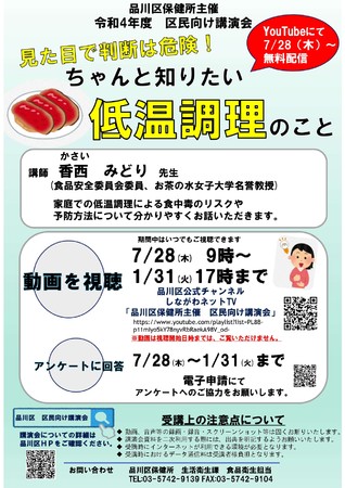 令和4年度区民向け講演会 「見た目で判断は危険!ちゃんと知りたい低温調理のこと」(品川区公式YouTubeチャンネル)