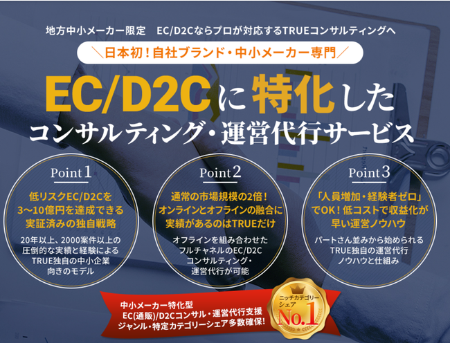 TRUEコンサルティングが、地方の中小企業限定のEC/D2Cコンサルティング・運営代行サービス拡大を開始