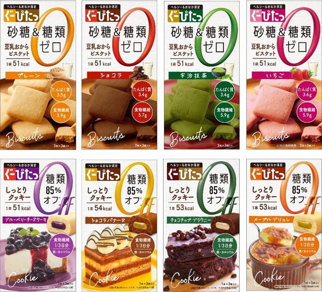 1997年にデビューした栄養調整食品「ぐーぴたっ」は、今年25周年。ダイエット中に不足しがちな栄養素を配合した、女性のキレイを応援するブランドです。食物繊維の他に大豆由来のたんぱく質・乳酸菌を配合した「豆乳おからビスケット」4フレーバーと、食物繊維に加え、カルシウム・鉄を配合した「しっとりクッキー」4フレーバーの栄養調整食品に加え、昨年度には、日本初※3の体脂肪減少※4と糖類ゼロを実現した機能性表示食品「豆乳おからビスケット アドバンス バニラ・ビターショコラ」の2フレーバーを投入するなど、常に進化を続けています。コロナ禍の自粛太りを気にする人や、一般のお菓子にも健康を求める人の増加による新規購入者増もあり、前年比138%※1、累計販売個数は、1億9800万個※2を達成。今回、機能面や栄養成分表示をより分かりやすく表記することで、さらなる新規購入者の増加を目指します※3 TPCマーケティングリサーチ株式会社 2020年11月調べ(機能性関与成分を「ローズヒップ由来ティリロサイド」とし、BMIが高めの方の体脂肪を減らす機能性表示ビスケットとして 「ぐーぴたっ 豆乳おからビスケット アドバンス バニラ」発売時/2021年3月10日)※4 BMIが高めの方の体脂肪を減らす(BMI25以上30未満)