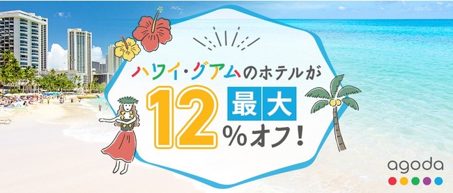 株式会社ジェーシービー (本社:東京都港区、代表取締役会長兼執行役員社長:浜川一郎、以下 JCB)は、2022 年 8月 1 日(月)から 2023年 1月 31 日(火)まで、「今こそハワイ・グアム旅行!Agodaのホテルが最大12%オフ!」キャンペーンを実施します。