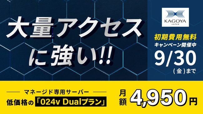 2022年8月1日(月)より、カゴヤ・ジャパン株式会社(本社:京都府京都市、代表取締役社長:岡村 武)は「サーバー見直しなら今!マネージド専用サーバー初期費用無料キャンペーン」を開催します。