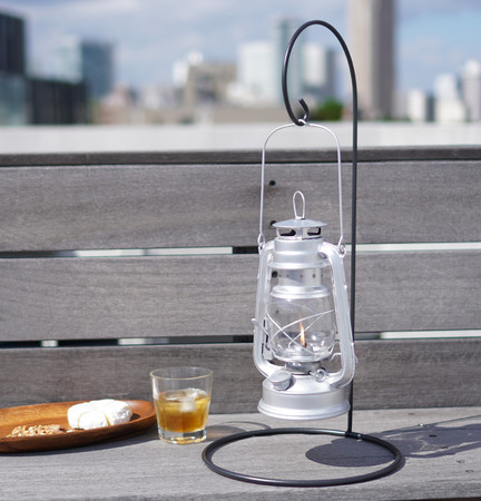 今回発売する「ランタンスタンドL」は、従来の「ランタンスタンド」よりも 吊り下げる部分が13cm以上高くなりました!人気のカメヤマのオイルランタンやクラシックランタンにも対応しています。