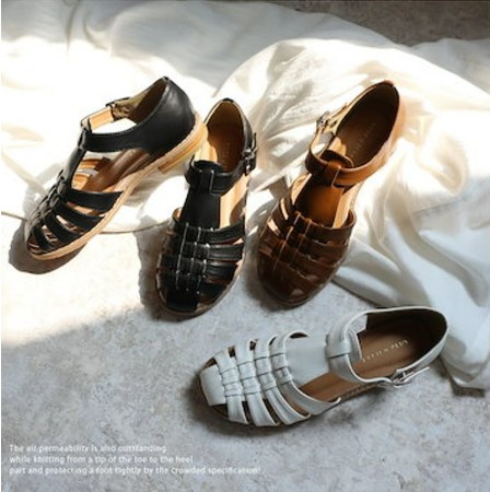 トレンドライクなローヒールのグルカサンダル。つま先やかかとがしっかりホールドされて歩きやすく、柔らか素材で足あたりも心地良い。