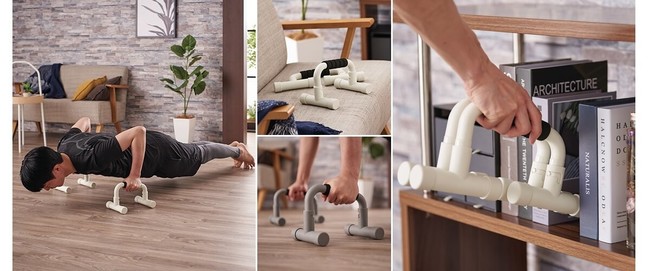 おうちで気軽にトレーニング、すき間収納ができるから場所をとらない!“折りたためるプッシュアップバー”2モデルを新発売