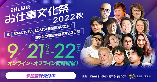 オンライン・オフラインの参加申し込みが本日スタート!ビジネスカンファレンス『みんなのお仕事文化祭 2022秋』2022年9月21日(水)~9月22日(木)開催!