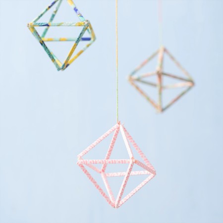 北欧のモビール「ヒンメリ」もおりがみで。オランダの「運河沿いの家」、イタリアの「カーニバルの仮面」など、型紙つきの作品も。