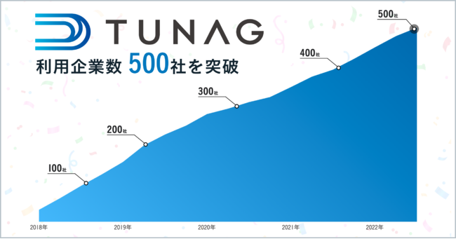 株式会社スタメン(本社:愛知県名古屋市、代表取締役:加藤 厚史、以下 スタメン)が自社で開発・提供する、従業員エンゲージメントを高めるITサービス「TUNAG(ツナグ、 https://tunag.jp/ja/ )」は、2022年8月に利用企業数が500社を突破したことを発表します。