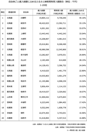 「令和2年度地方財政状況調査、令和3年度ふるさと納税に関する現況調査の結果(総務省発表)を独自に分析」の主な結果