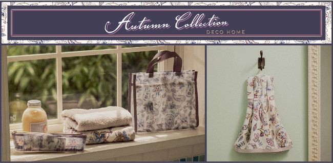デコホームの秋の新シリーズは大人かわいいペイズリー柄。リビング、寝室、キッチン、バスルームなど、シリーズ商品でプチコーディネートを楽しめます。
