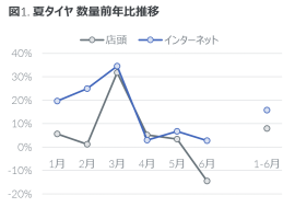 ・ タイヤは数量前年比14%増と好調で、平均価格は店頭、インターネットともに5%上昇した。