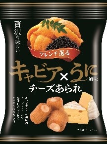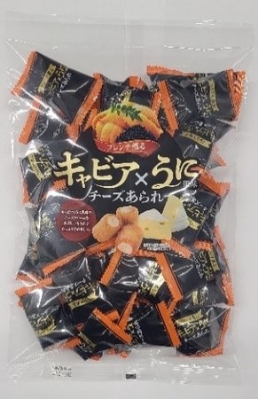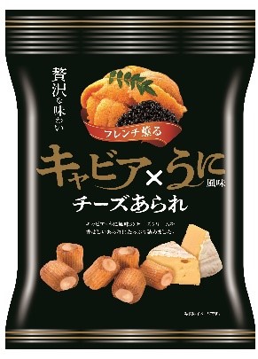 チーズあられに“キャビア”と“うに”フレーバーをブレンドしたリッチなお菓子が登場!食べきりサイズに大袋も、3サイズから選べます♪