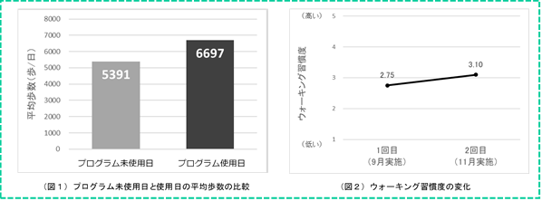 ⇒イオンモールアプリ上でのアンケート調査(第1回:9月/第2回:11月)を実施。ウォーキング習慣度を分析し、1回目調査に比べ2回目調査のウォーキング習慣度が高い結果となった。(図2)