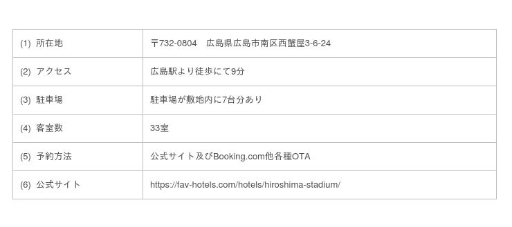 ■『FAV HOTEL 広島スタジアム』施設詳細