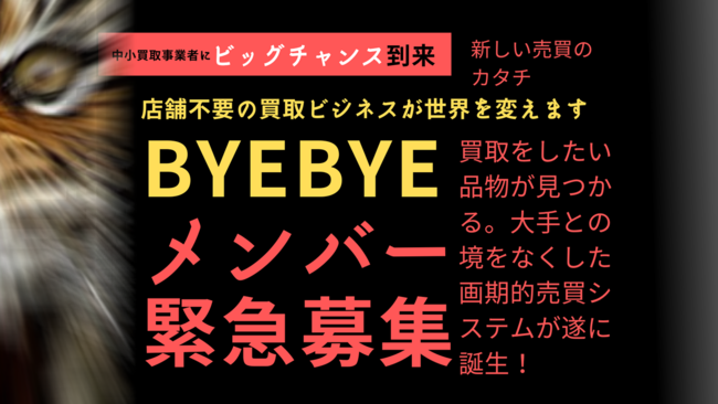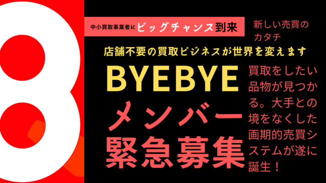 緊急募集 BYEBYE 店舗不要の買取ビジネスが世界を変えます。