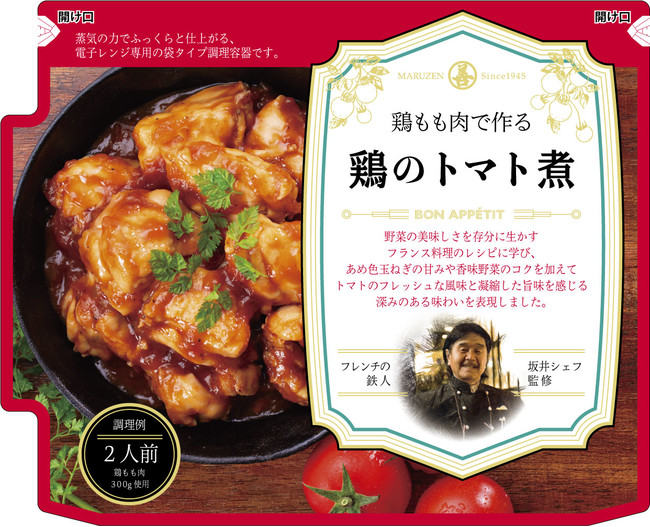 株式会社丸善(本社:東京都台東区、代表取締役社長:原壮太)は、2022年9月5日に「坂井シェフ監修 レンジ調理 鶏のトマト煮」「坂井シェフ監修 レンジ調理 鶏の赤ワイン煮」を新発売いたします。