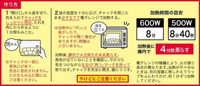 コク深く仕上げた本格ソースは、厳選した素材で調味し、旨みを引き出しました。レンジ専用パウチでの加熱による「スチーム効果」と蒸らしで、お肉がふっくらと仕上がります。おうちにいながら、一流レストランで食べるような本格的な一品を、簡単に作ることができます。