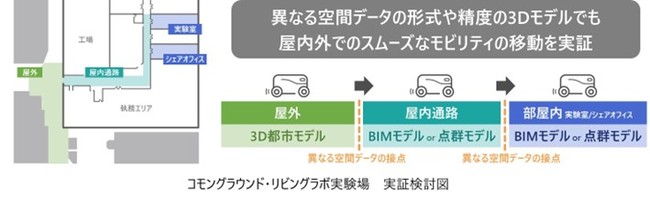 3社は、「コモングラウンド・リビングラボ」に2021年7月から参画し、これまで建物内に設置したLiDAR※6などのセンサーから取得した位置情報により、屋内におけるモビリティや建物設備との連携制御を行い、デジタルツインを構築してきました。これらの知見と技術を活用して本実証を推進していきます。