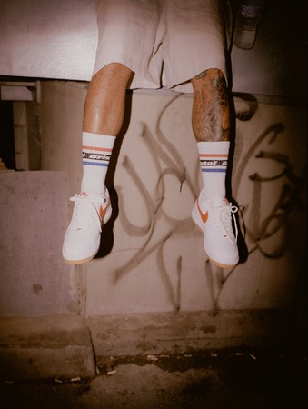 ATR FORCE 1を愛するスニーカーヘッズのユニフォームをイメージし、「F.C.Real Bristol」の代表的なアイテムの中から「PREMATCH TOP」、「PRACTICE SHORTS」「REGULAR SOCKS」をセレクト。トップス背面の"40"や、Air Force 1のアウトソールを彷彿とさせるプリント、ソックスの"1982"など、随所にAF1誕生を祝したメッセージと「atmos」ならではのストリート色を感じさせるコラボレーションアイテムは必見。