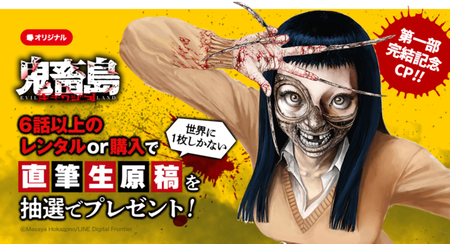さらに、『鬼畜島』の連載話を6話以上レンタルもしくは購入し、キャンペーンにエントリーした方の中から抽選で30名様に、世界に1枚しかない『鬼畜島』の直筆生原稿をプレゼントする特別企画も9月30日(金)まで開催します。応募方法などの詳細は、LINEマンガ公式ブログ(https://manga-blog-ja.line.me/archives/15860164.html)で公開中です。