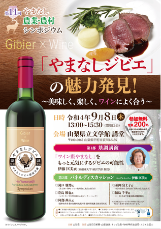 第14回となる本年は、昨年度、新型コロナウイルスの影響で延期となった「やまなしジビエの魅力発見!~美味しく、楽しく、ワインによく合う~」をテーマに、やまなし大使や県ジビエビジネス戦略会議の会長を務めていただいている亜細亜大学経営学部 教授 伊藤 匡美 氏により『「ワイン県やまなし」をもっと元気にするジビエの可能性』と題してご講演いただきます。