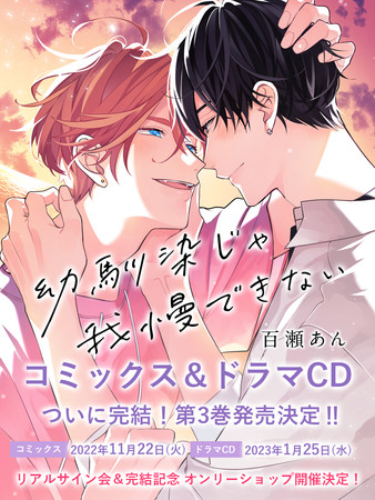 百瀬あん先生の大人気BLシリーズ『幼馴染じゃ我慢できない』より、待望のコミックス第3巻が2022年11月22日、ドラマCD第3巻が2023年1月25日に発売決定!