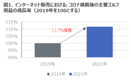 ・2021年の主要ゴルフ用品のインターネット販売金額は、コロナ禍以前の2019年と比較して11.7%成長した。