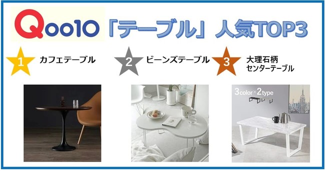 Qoo10では、家具やインテリアを多数取り扱っており、中でもインテリアの中心ともなる「テーブル」の人気ランキングを調査しました。ホワイトやブラウン、ブラックなど単色で他のインテリアにもなじみやすいアイテムが人気となっています。