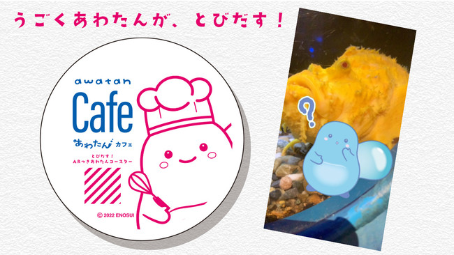 新江ノ島水族館公式キャラクター「あわたん」をモチーフにしたオリジナルメニューが楽しめる「あわたんカフェ」にて配布されている「とびだす!ARつきあわたんコースター」をゲットすると、「palanAR」の仕組みを活用して制作されたオリジナルARコンテンツが体験できます!