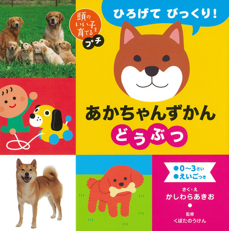 赤ちゃんとのコミュニケーションを促し、好奇心を育てるシリーズとして累計48万部以上を発行している「頭のいい子を育てるプチ」から、ページがダイナミックに広がる仕掛けつき図鑑絵本『ひろげて びっくり! あかちゃんずかん どうぶつ』が登場しました。ページが広がり、同じどうぶつが4つのシーンで現れる仕掛けになっているので、めくるたびに驚きと楽しさがあるインタラクティブな絵本! 「いぬ」「ねこ」「ぞう」「パンダ」「きりん」「うさぎ」、6種類の身近な動物を厳選した、赤ちゃんがはじめて出会うファースト図鑑です。