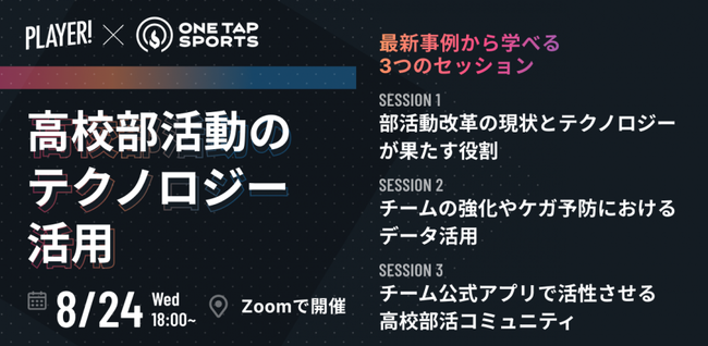 ONE TAP SPORTSとPlayer! WHITE、「高校部活動のテクノロジー活用」をテーマにオンラインカンファレンスを共同で開催