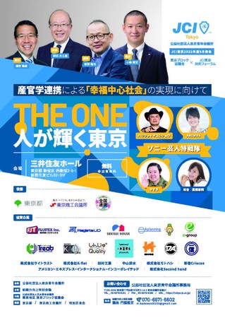 産官学連携による「幸福中心社会」の実現に向けて『THE ONE~人が輝く東京』開催決定!