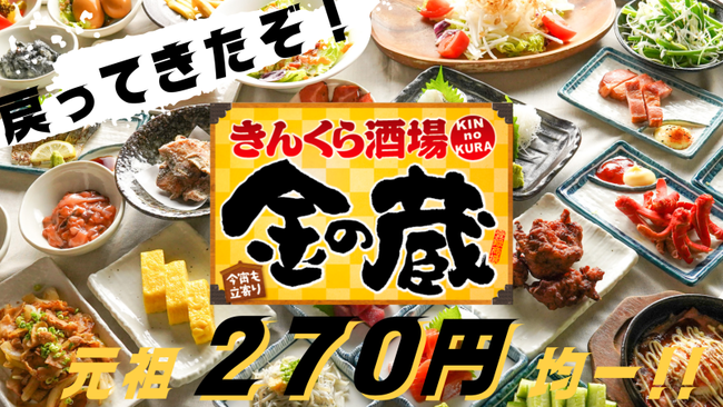 金の蔵が270円居酒屋から変わり早10年…創業当時の想いを引継ぎ元祖270円居酒屋として戻ってきます!