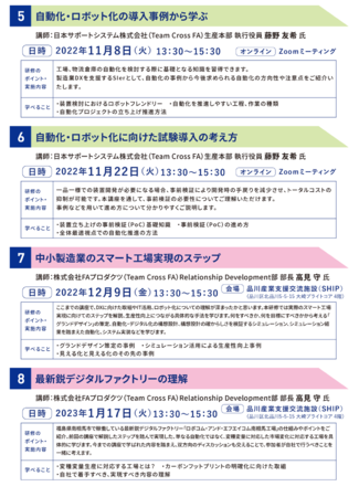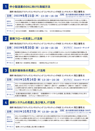 生産工程等を改めて見直しつつ、デジタルツールの効果的な活用方法、導入のポイント等について分かりやすく、実践的なカリキュラムとなっています。ぜひご参加ください。