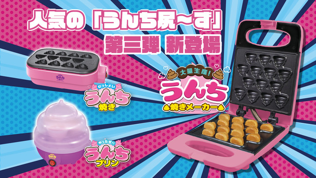 そんな世の「うんちマニア」需要?に応えて2022年5月に"うんち尻~ず"の第二弾「やったぜ!うんちプリン」を発売。そして今回第三弾の「大量生産!うんち焼きメーカー」の発売が決定しました。