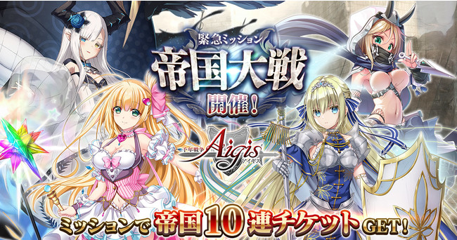 高レアの帝国キャラを選べるお得なパック販売中!帝国10連召喚チケットがGETできるイベントをDMM GAMES『千年戦争アイギス』シリーズにて開催中!