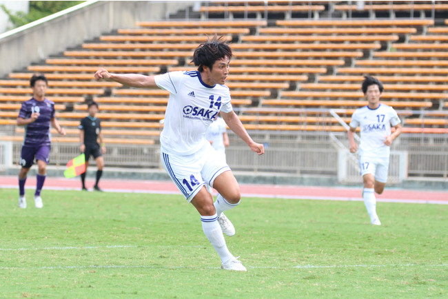 ともに2連戦目となったこの一戦は開始早々から大阪府が試合のペースを掴むと、4分にMF高橋からのロングパスにDF大桃が頭で合わせる。このシュートはわずかに枠を捉えられなかったが、得点の匂いを感じさせると、25分、相手DFのクリアミスを逃さず、ボールを奪ったMF吉馴がミドルシュートを叩き込み、先制に成功する。続く28分には、FW宇高がMF上月とのワンツーで相手DFの裏に抜け出し、FW宇高がシュートを落ち着いて決めて追加点。前半は2-0とリードして試合を折り返す。