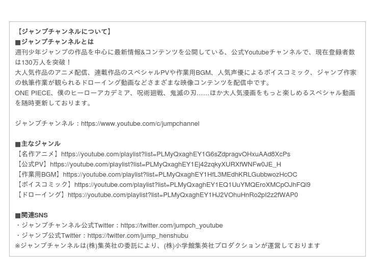 ・ジャンプチャンネル公式Twitter:https://twitter.com/jumpch_youtube