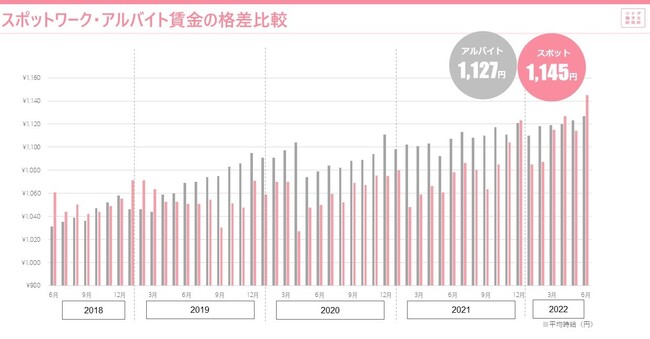 3.スポットワーカーの平均時給は1,145円。通常のアルバイト平均時給より18円高い