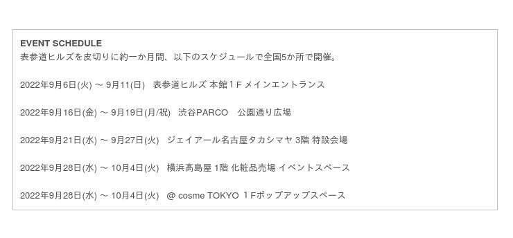 実施期間:2022年9月21日(水) ~ 9月27日(火) ジェイアール名古屋タカシマヤ 3階 特設会場