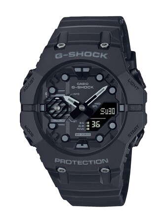 『GA-B001/B001G』は、新たな外装構造への挑戦として、ベゼルとバンドを一体成型した構造を備えた耐衝撃ウオッチです。3時・9時位置でベゼルを切り分け、上下それぞれのベゼルをバンドと一体で構成し、“G-SHOCK”シリーズで初めての構造を採用しました。
